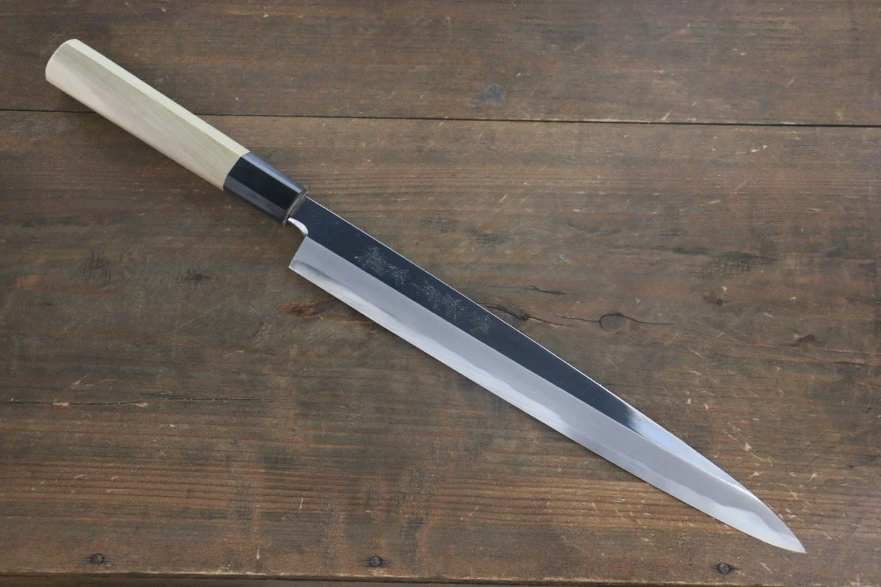 - Dao Một Lưỡi: Chuyên dùng cho những nhiệm vụ cần đến độ chính xác và kỹ thuật cao. Dao Deba được sử dụng để sơ chế cá, từ việc loại bỏ vảy cho đến chặt đầu và xử lý nội tạng. Dao Sashimi, với lưỡi dao dài và mảnh, được thiết kế để cắt những lát cá mỏng và đều tuyệt đối.