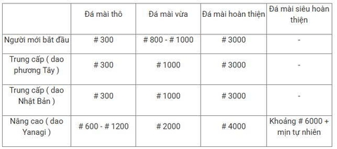 Đá mài được chia thành 4 cấp độ chính, nhưng thực tế chỉ cần đá #600–#2000 là đủ cho hầu hết nhu cầu.