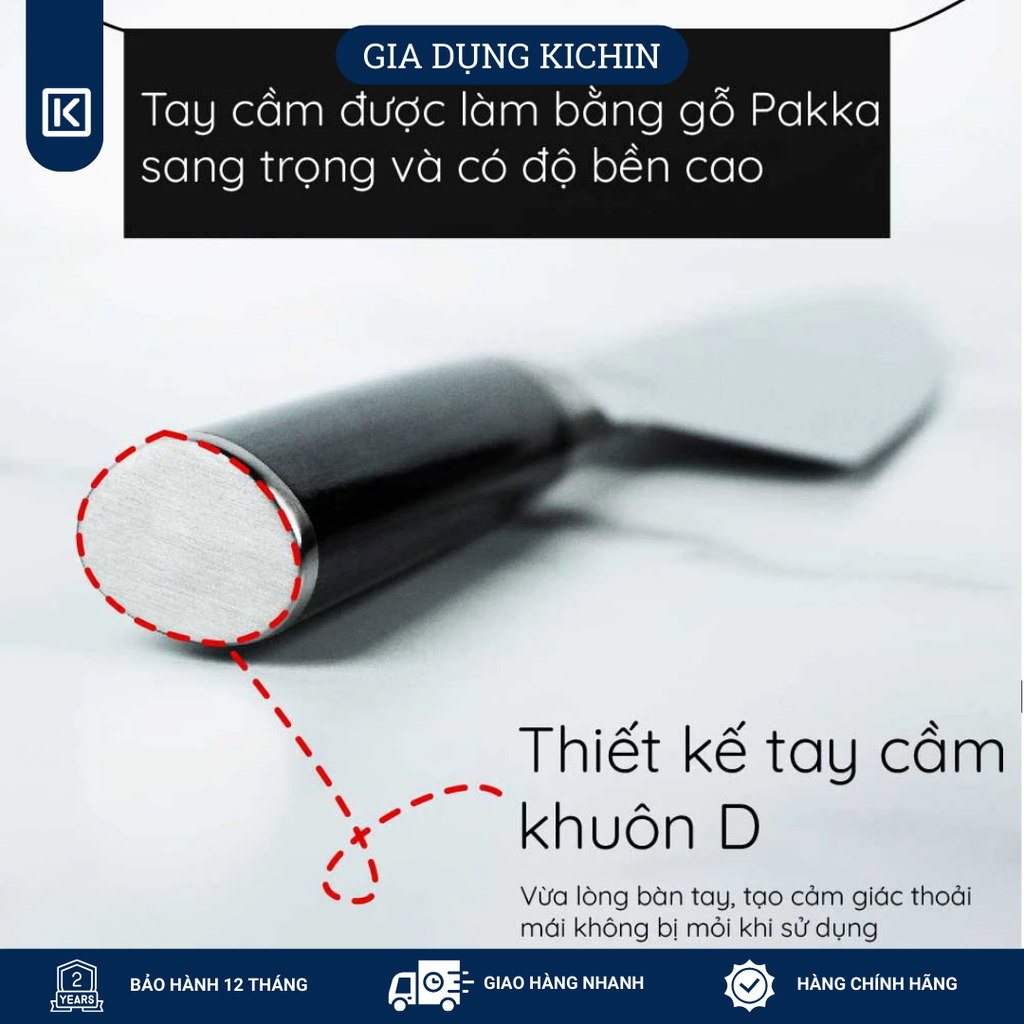 - Tay cầm làm từ gỗ Pakka cao cấp phủ nhựa cây mang đến cảm giác cầm nắm chắc chắn