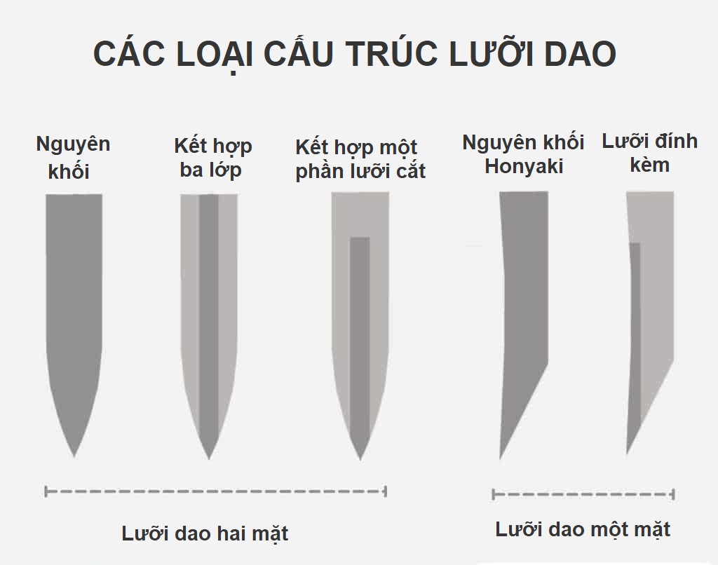 - Thép: Khối liền với lưỡi dao, tạo cảm giác chắc chắn.