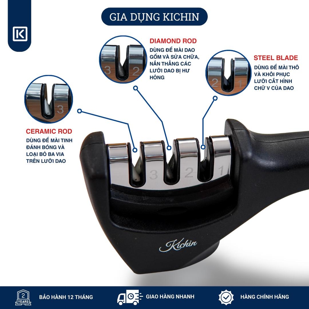 DỤNG CỤ MÀI DAO 3 BƯỚC CAO CẤP KICHIN – SẮC BÉN NHƯ MỚI, TIỆN LỢI MỌI LÚC