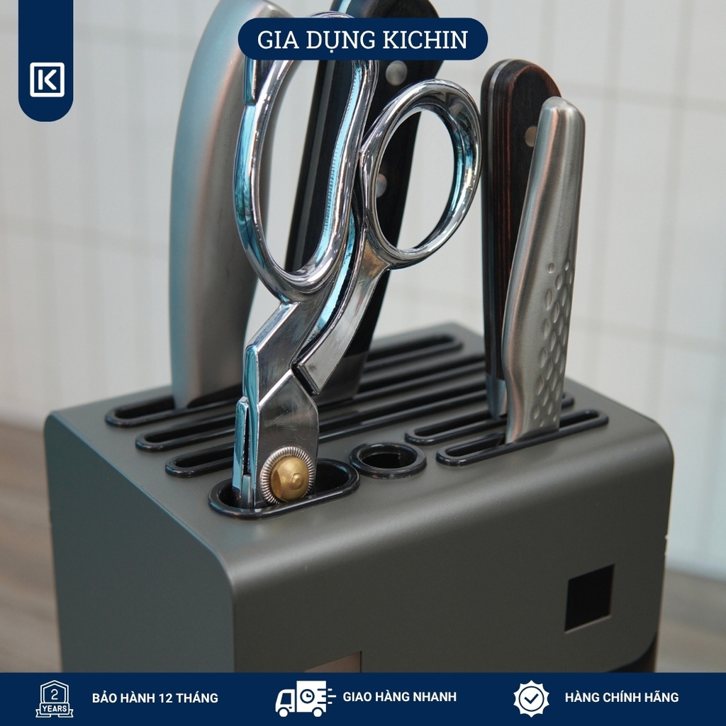 Thiết kế thông minh: Gồm 5 rãnh cắm dao riêng biệt, giúp phân loại dao theo kích thước – từ dao chặt, dao thái đến dao gọt – tránh va chạm, trầy xước lưỡi dao.