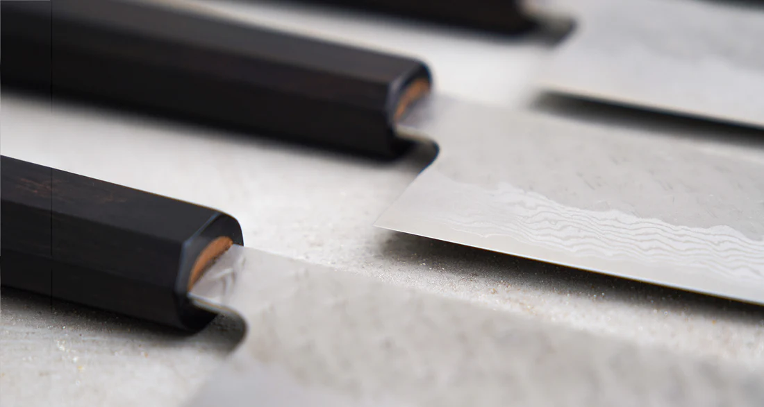 Cán dao kiểu Tây (Yo): Đối với những người tìm kiếm cảm giác quen thuộc hơn khi cầm nắm, cán dao kiểu Tây là một biến thể phổ biến, thường được kết hợp với hình dạng Santoku. Những cán dao này có cấu trúc chắc chắn hơn, nặng hơn một chút và cân bằng tốt, nhưng có thể khó thay thế hơn.